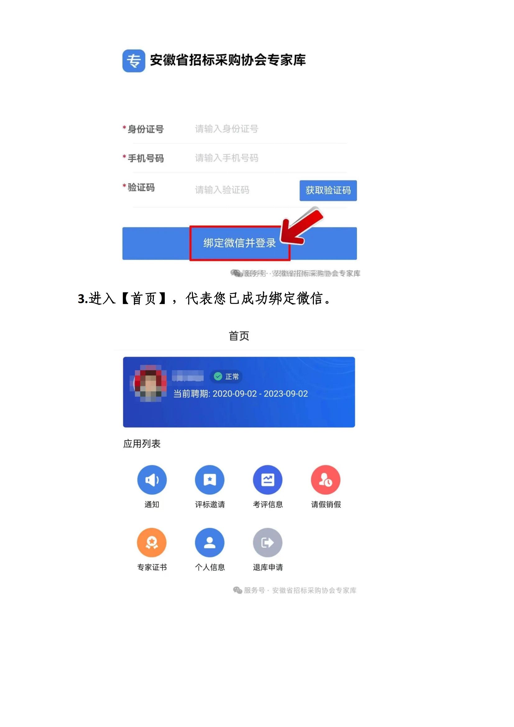 安徽省招标采购协会专家库服务号微信应用端绑定操作手册